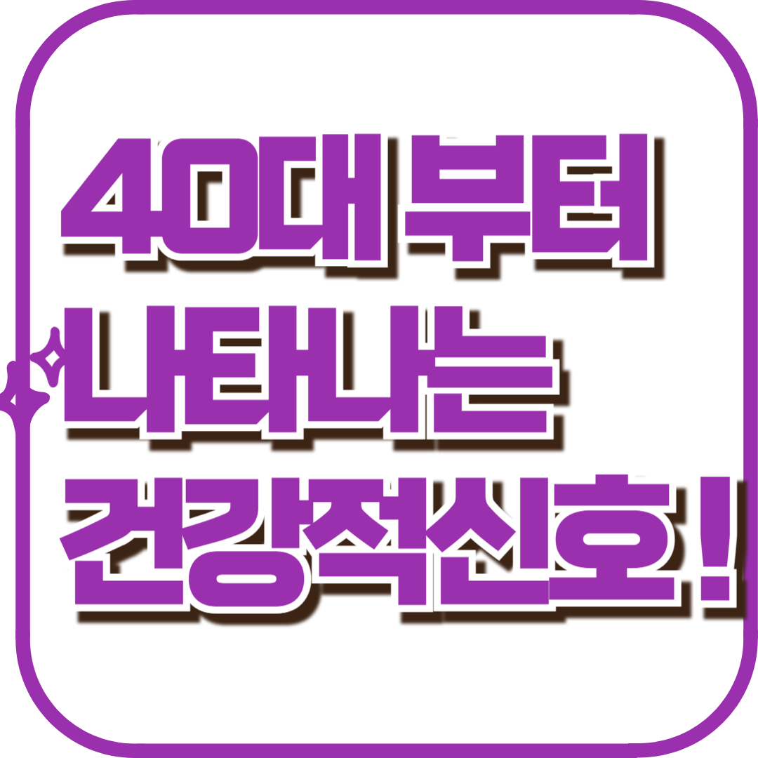 이 외에도 40대에 나타날 수 있는 건강 적신호로는 소화 기능 저하, 잦은 관절 통증, 손발 저림, 성욕 감퇴, 눈의 피로감 등이 있습니다. 이처럼 ‘하루 이틀 정도 겪는 가벼운 증상’이라 여겼던 것들이 사실은 몸이 보내는 매우 중요한 위험 신호일 수 있습니다. 건강은 한순간에 무너지는 것이 아니라, 작고 반복적인 경고를 무시한 결과로 찾아옵니다. 지금 이 순간부터라도 내 몸의 변화를 민감하게 인식하고, 꾸준한 관찰과 관리로 50대, 60대의 건강을 지켜야 합니다.